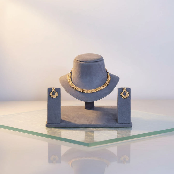 Weight: 38.0 Grams, Earring Height = 32 mm || Width = 25 mm,Regular Size And Adjustable,Plain Gold Necklace,Gold Plating,Antique Necklace Set