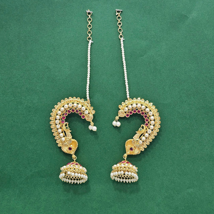 Weight: 55.0 Grams, Height = 90 mm || Width = 48 mm,Moti Earring,Gold Plating,Antique Earring