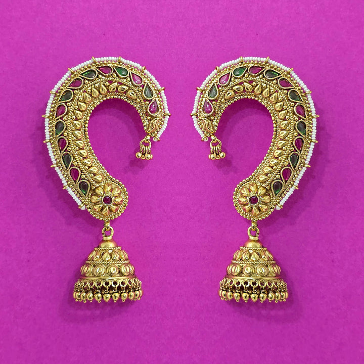 Weight: 55.0 Grams, Height = 100 mm || Width = 28 mm,Earcuff With Jhumki,Gold Plating