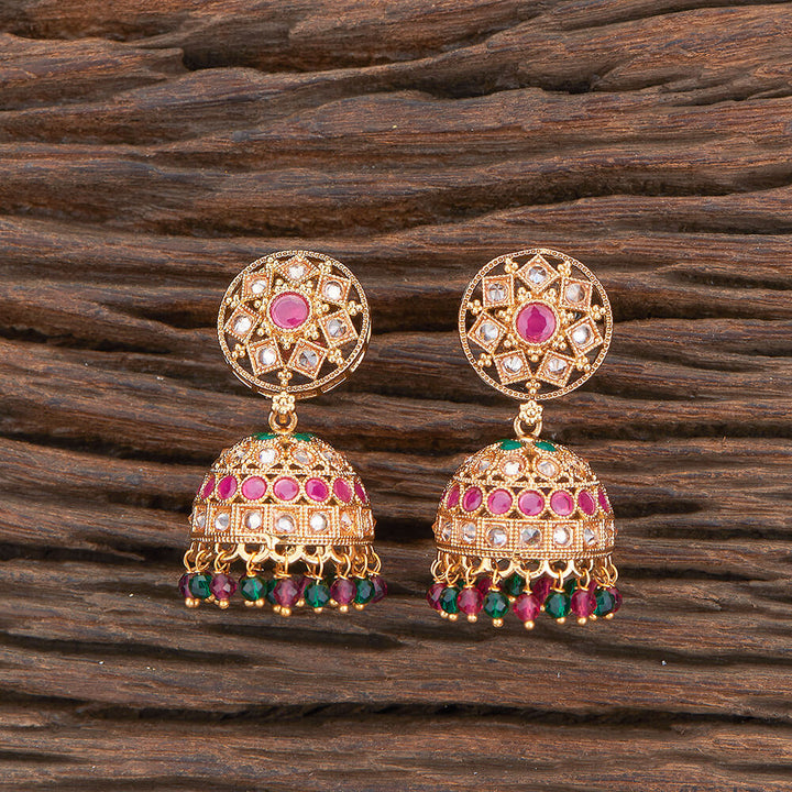 217538 Antique Jhumki With Gold Plating