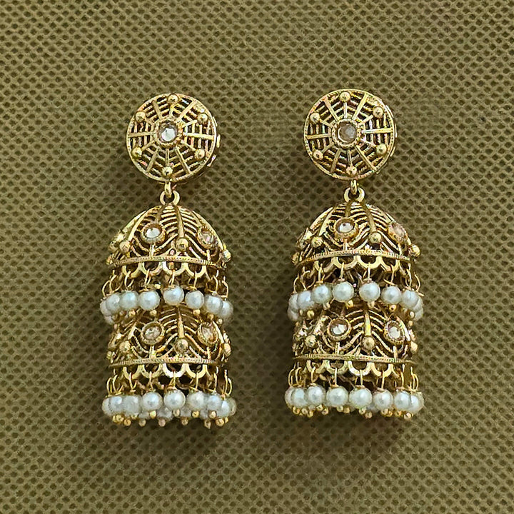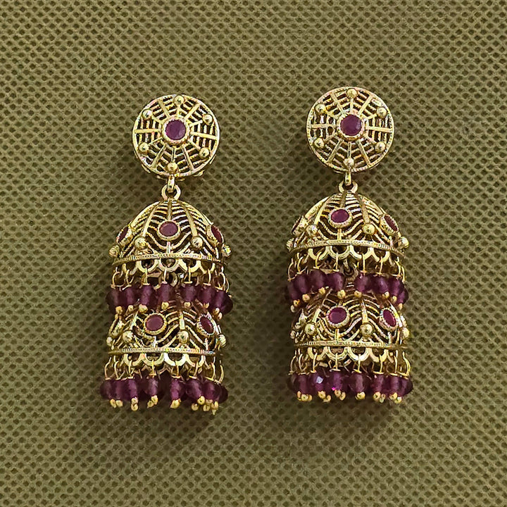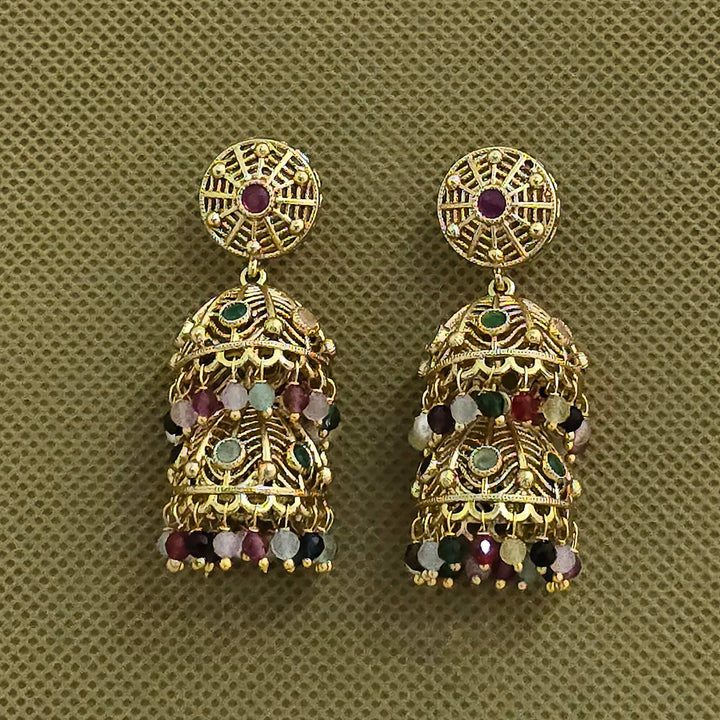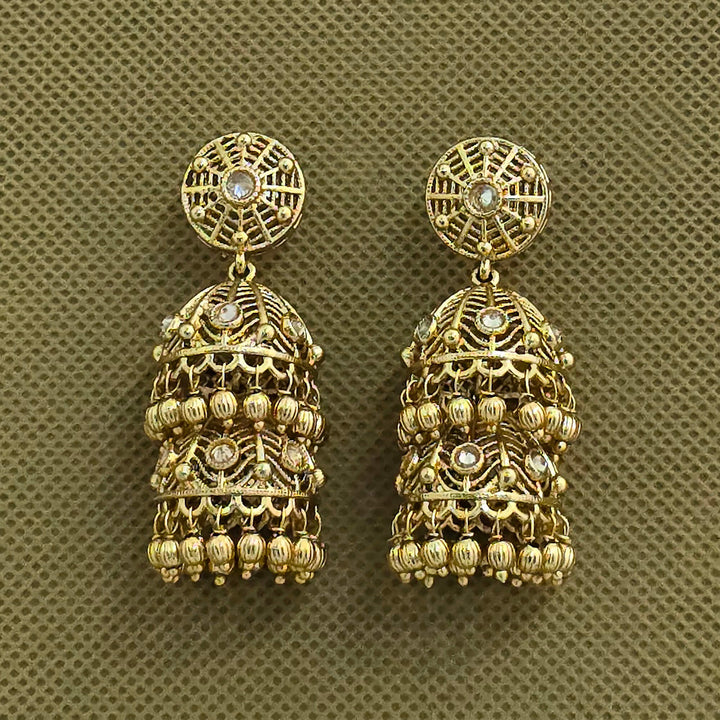 Weight: 24.0 Grams, Height = 50 mm || Width = 20 mm,Double Jhumki,Gold Plating,Antique Earring