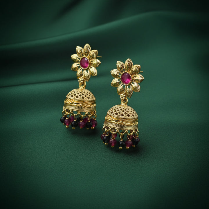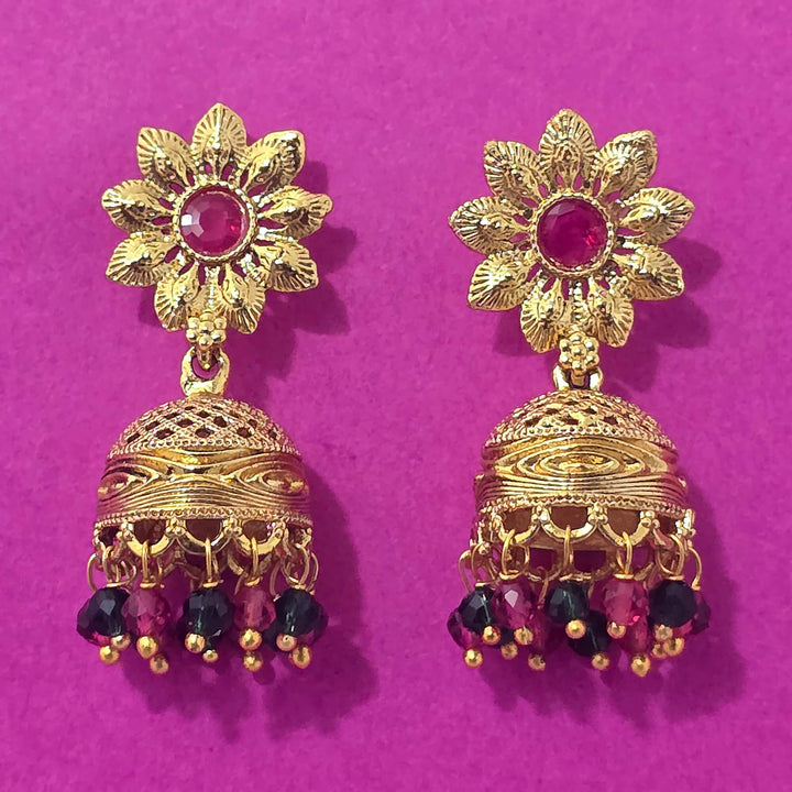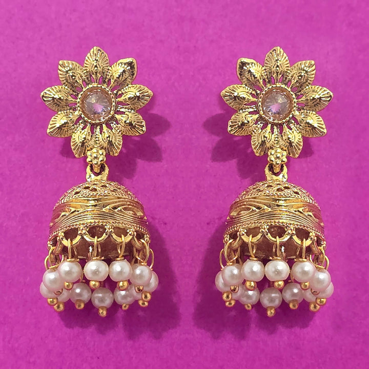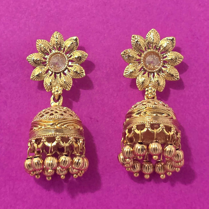 Weight: 10.0 Grams, Height = 35 Mm || Width = 16 Mm,Classic Jhumki,Gold Plating,Antique Earring