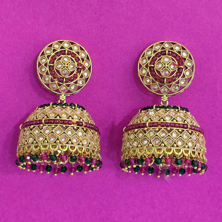 Weight: 45.0 Grams, Height = 60 mm || Width = 40 mm,Classic Jhumki,Antique Earring,Gold Plating