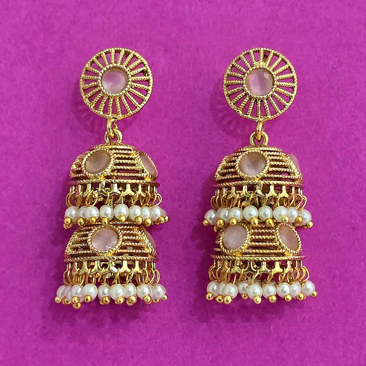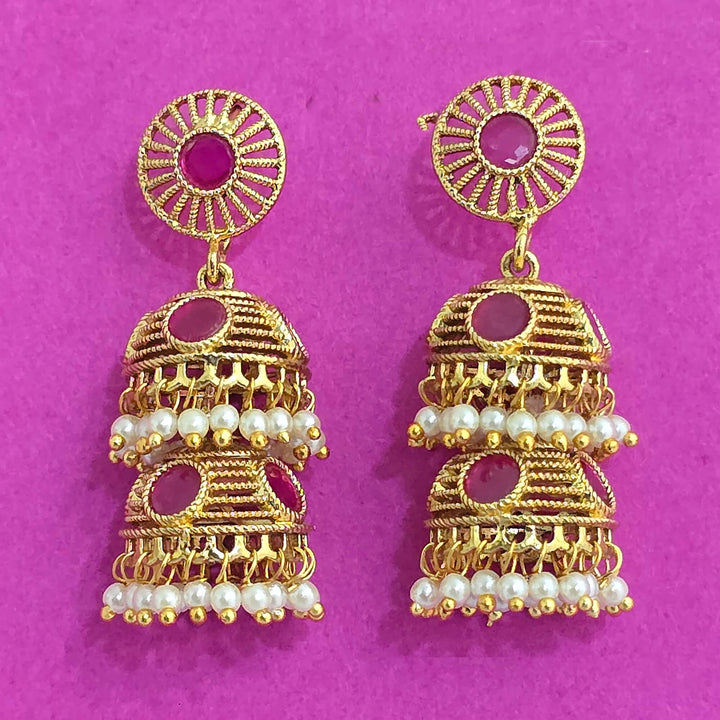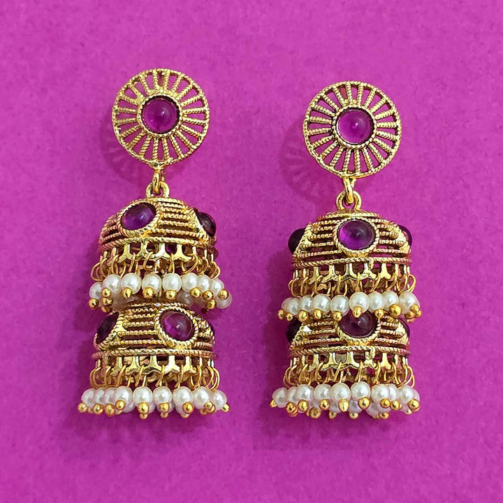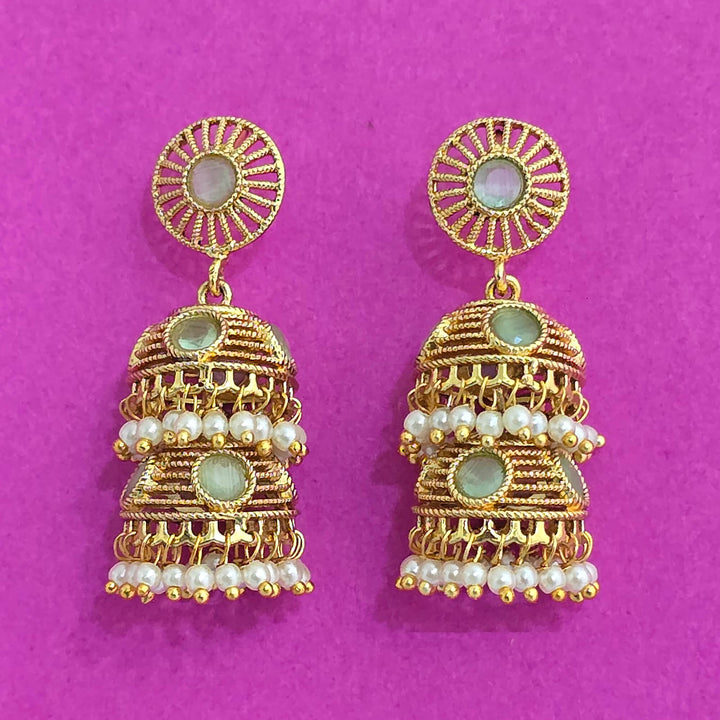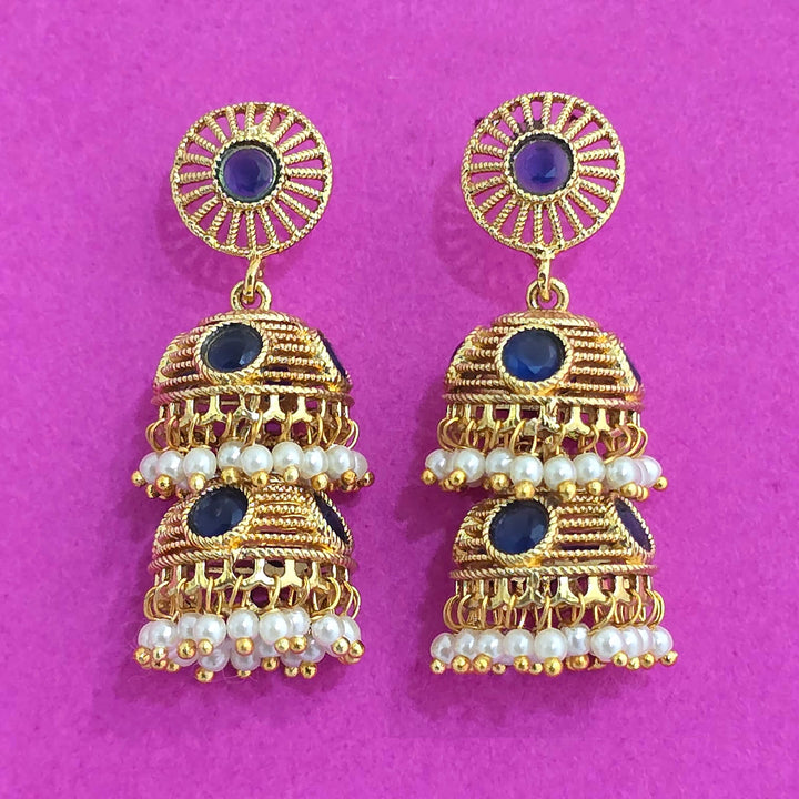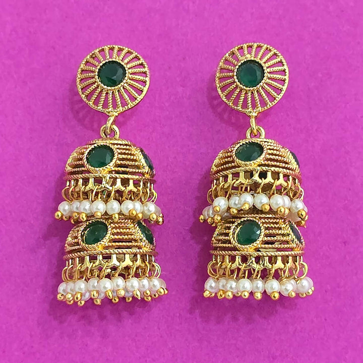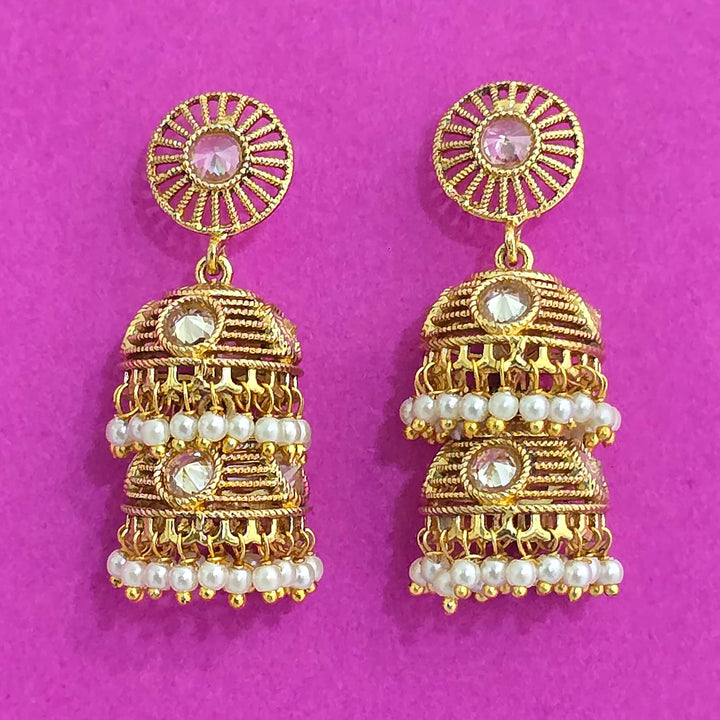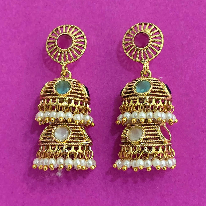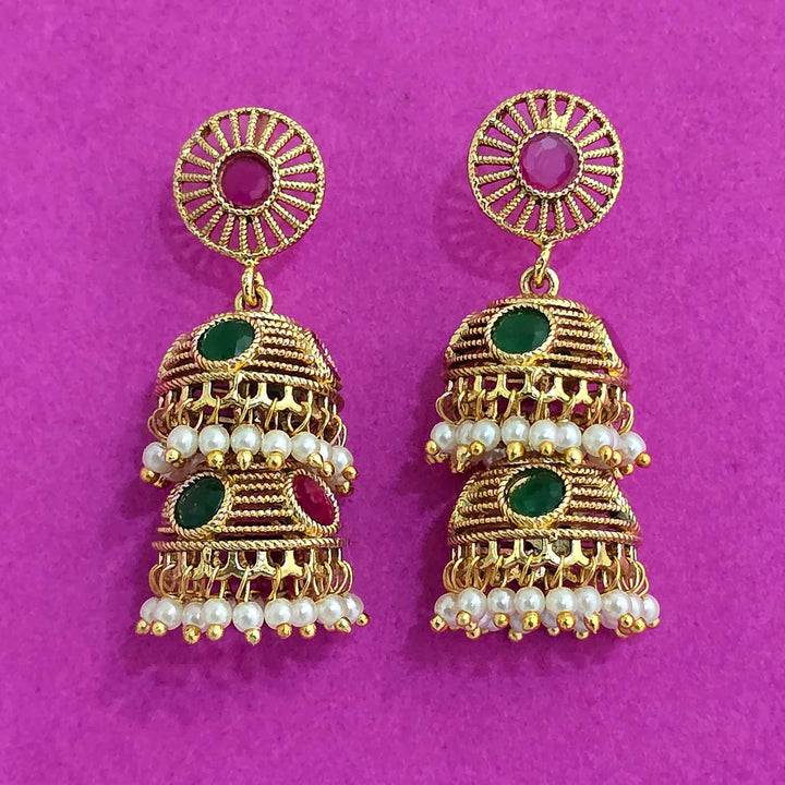 Weight: 15.0 Grams, Height = 40 mm || Width = 16 mm,Double Jhumki,Antique Earring,Gold Plating