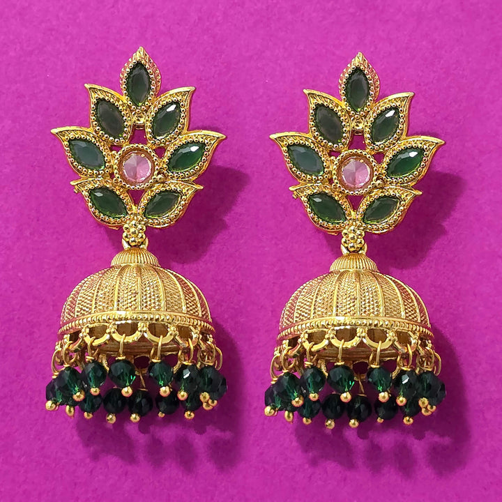 Weight: 15.0 Grams, Height = 45 Mm || Width = 20 Mm,Classic Jhumki,Gold Plating,Antique Earring