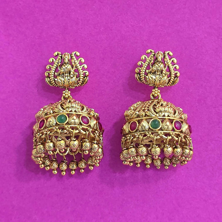 227712 Antique Jhumki With Gold Plating