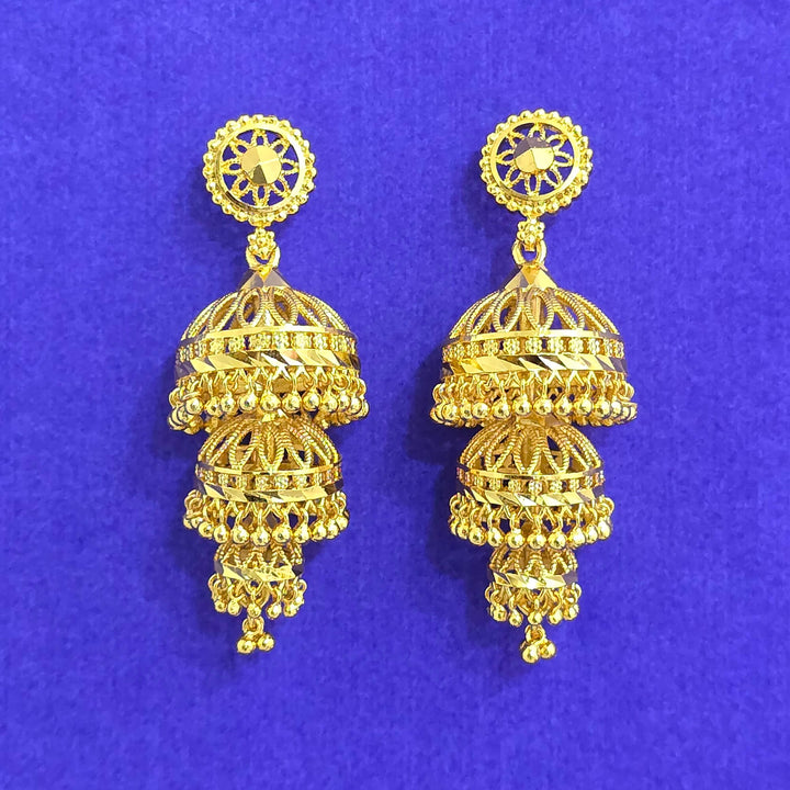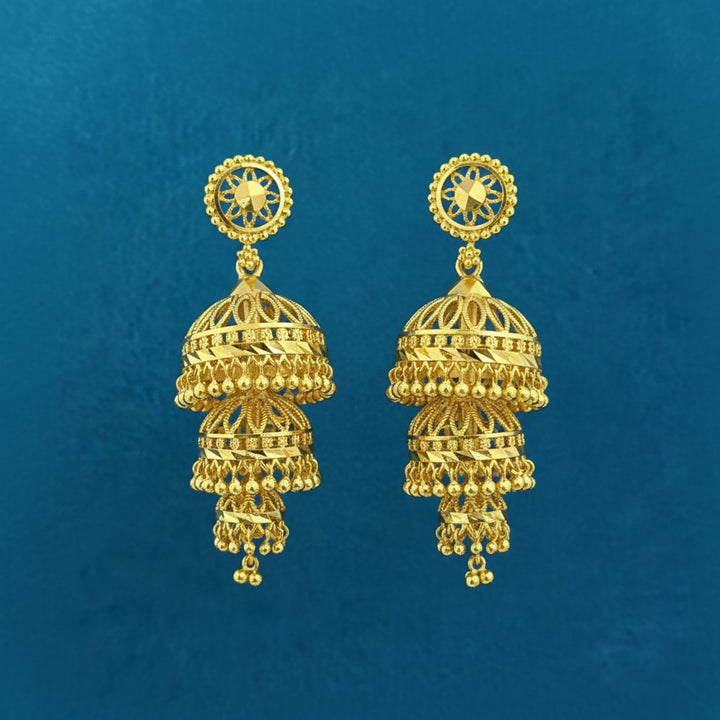 Weight: 20.0 Grams, Height = 55 mm || Width = 20 mm,Triple Jhumki,Gold Plating,Antique Earring