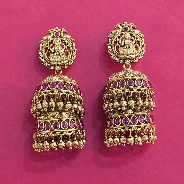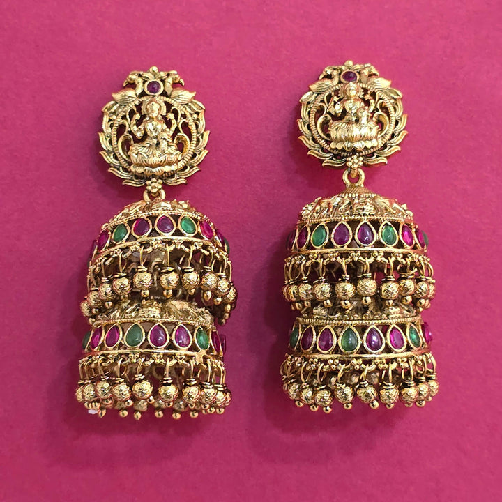Weight: 35.0 Grams, Height = 55 mm || Width = 22 mm,Temple Earring,Gold Plating,Antique Earring
