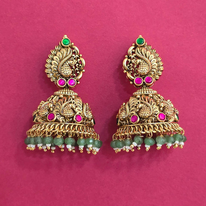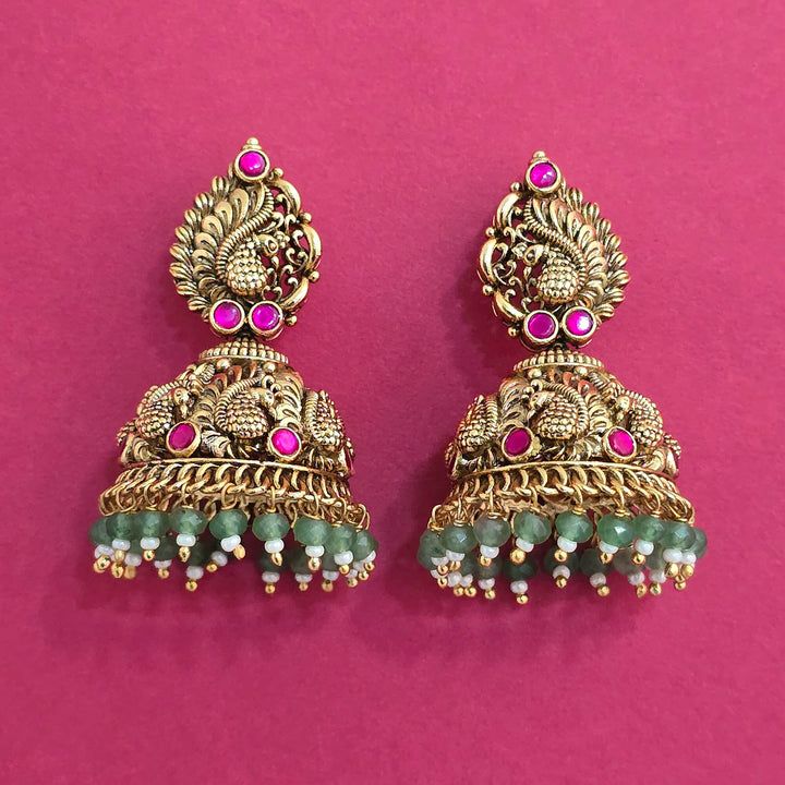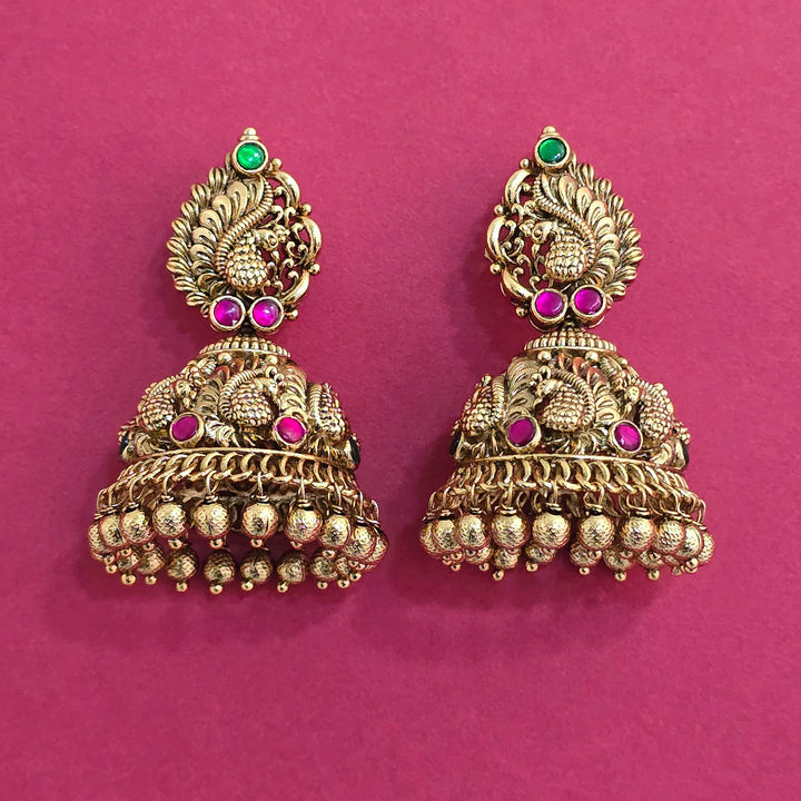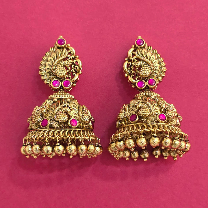 228735 Antique Jhumki With Gold Plating