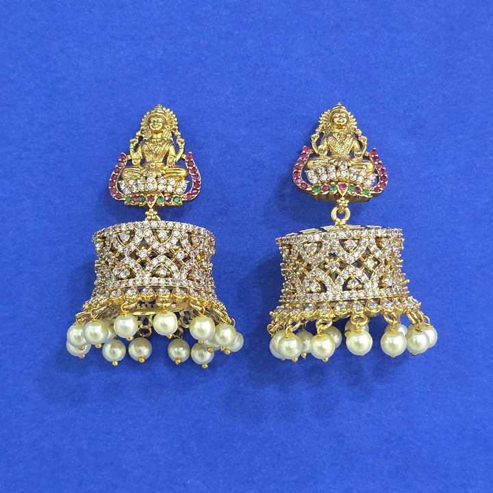 Weight: 28.0 Grams, Height = 50 mm || Width = 34 mm,Temple Jhumki,Gold Plating,Antique Earring