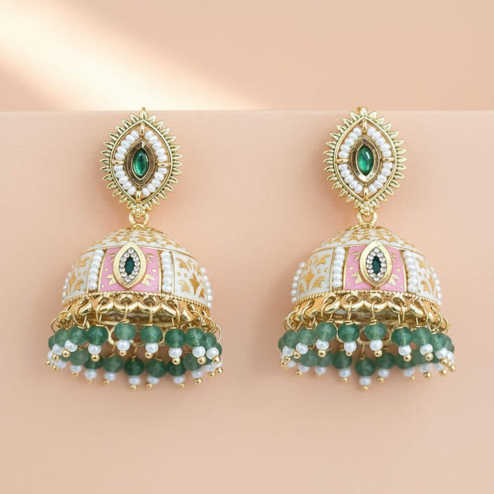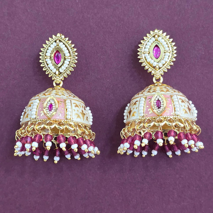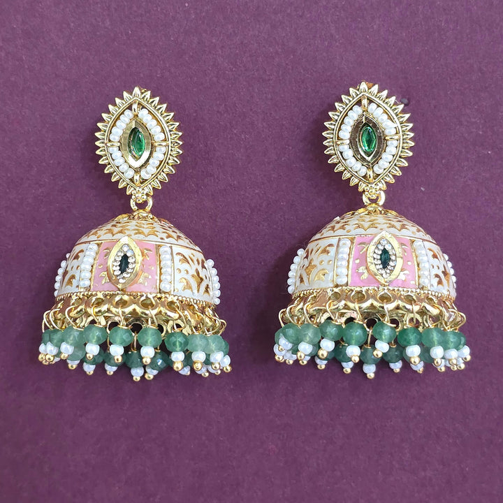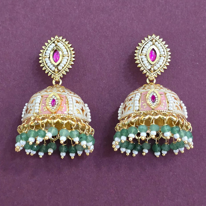 Weight: 27.0 Grams, Height = 45 Mm || Width = 32 Mm,Meenakari Jhumki,Gold Plating,Antique Earring