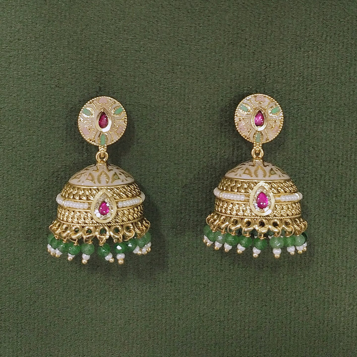 Weight: 27.0 Grams, Height = 42 mm || Width = 32 mm,Meenakari Jhumki,Antique Earring