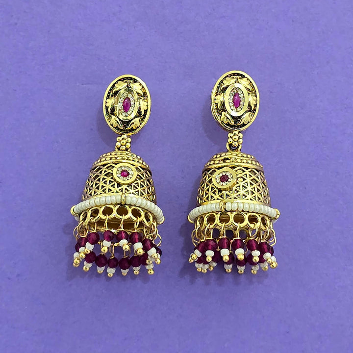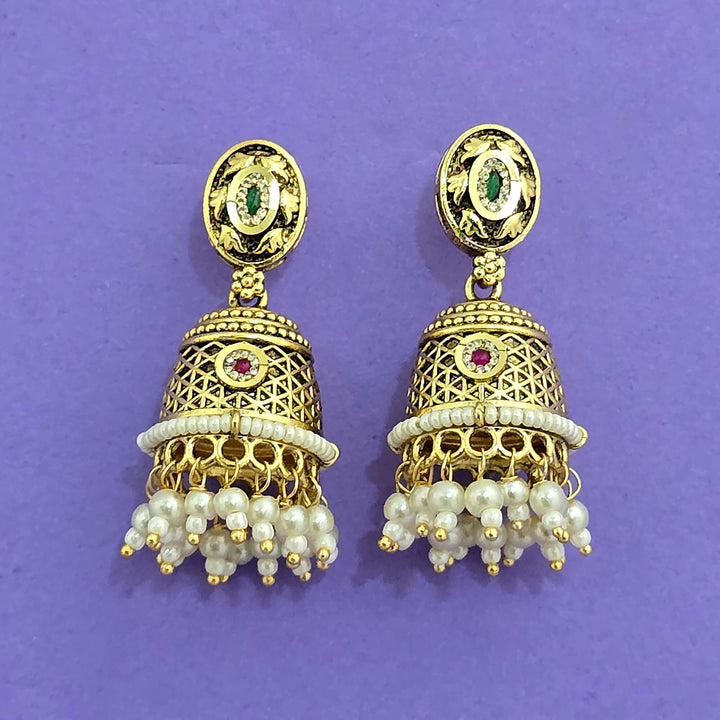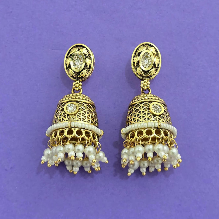 Weight: 19.0 Grams, Height = 40 mm || Width = 22 mm,Moti Jhumki,Antique Earring