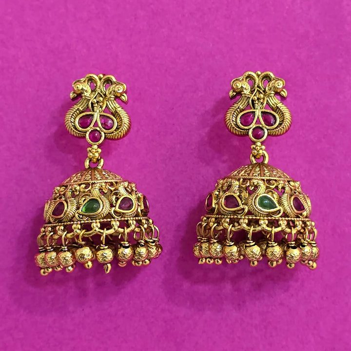 Weight: 15.0 Grams, Height = 35 mm || Width = 24 mm,Classic Jhumki,Matte Gold Plating,Antique Earring