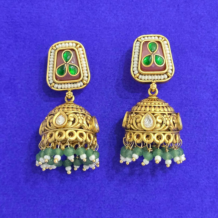 Weight: 23.0 Grams, Height = 43 mm || Width = 22 mm,Classic Jhumki,Matte Gold Plating,Antique Earring
