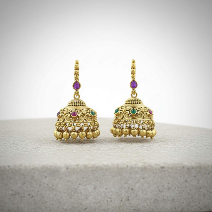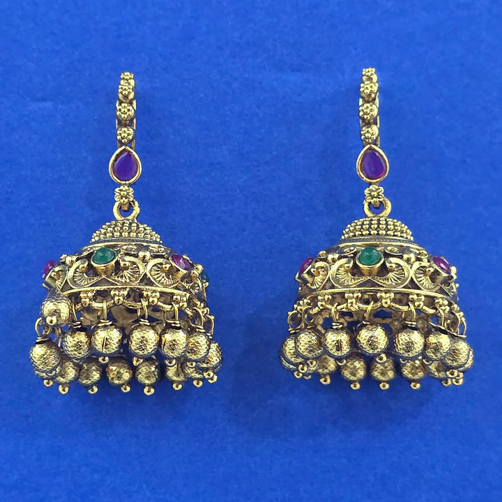 Weight: 20.0 Grams, Height = 42 mm || Width = 28 mm,Classic Jhumki,Matte Gold Plating,Antique Earring