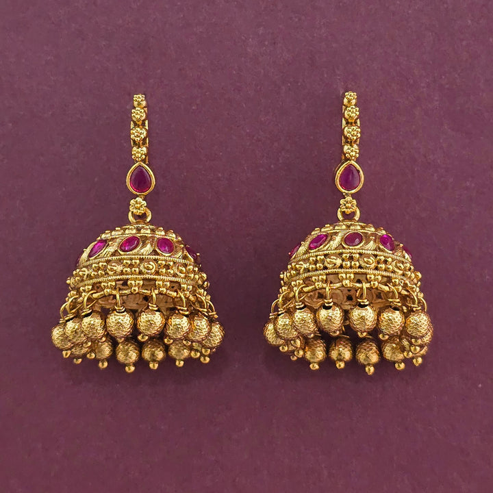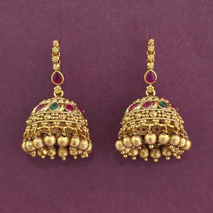 Weight: 18.0 Grams, Height = 42 mm || Width = 24 mm,South Indian Earring,Matte Gold Plating,Antique Earring