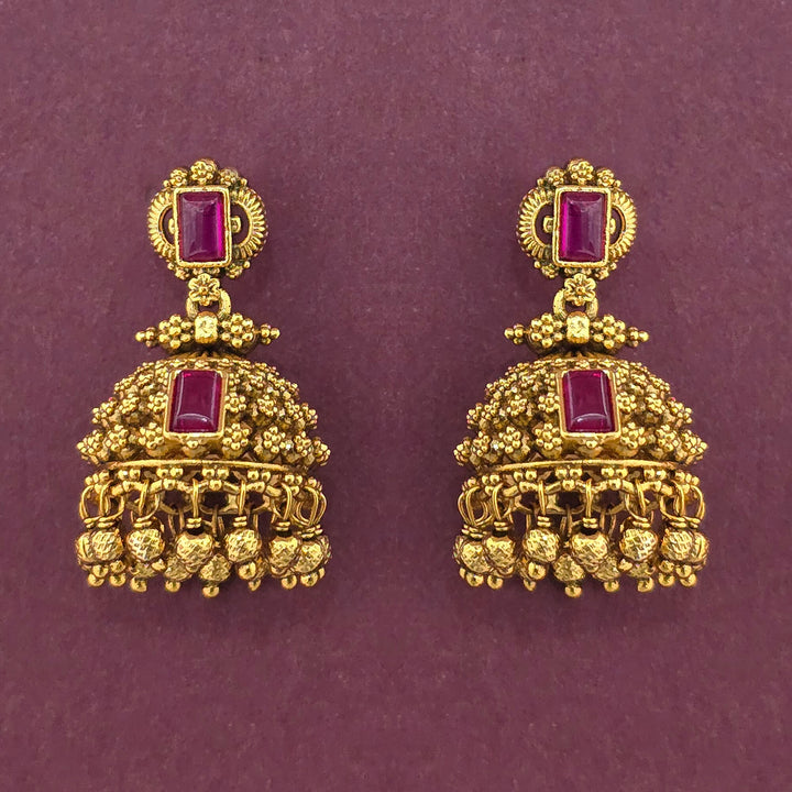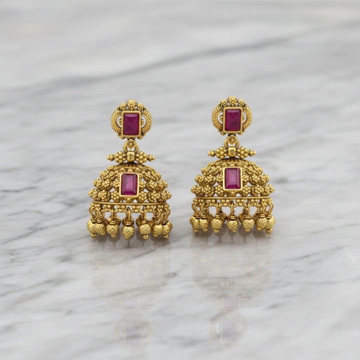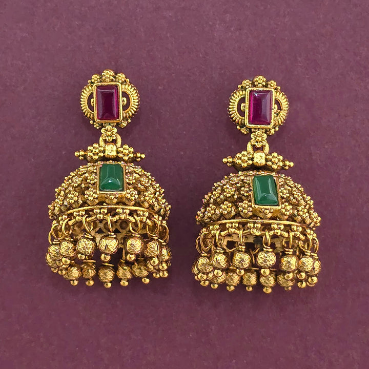 Weight: 16.0 Grams, Height = 35 mm || Width = 20 mm,South Indian Earring,Matte Gold Plating,Antique Earring