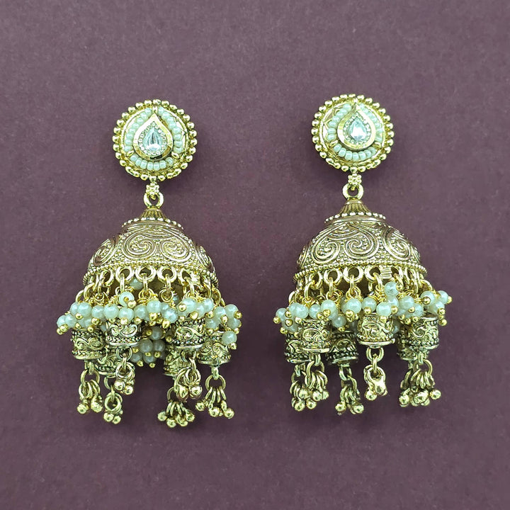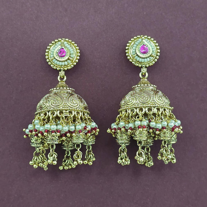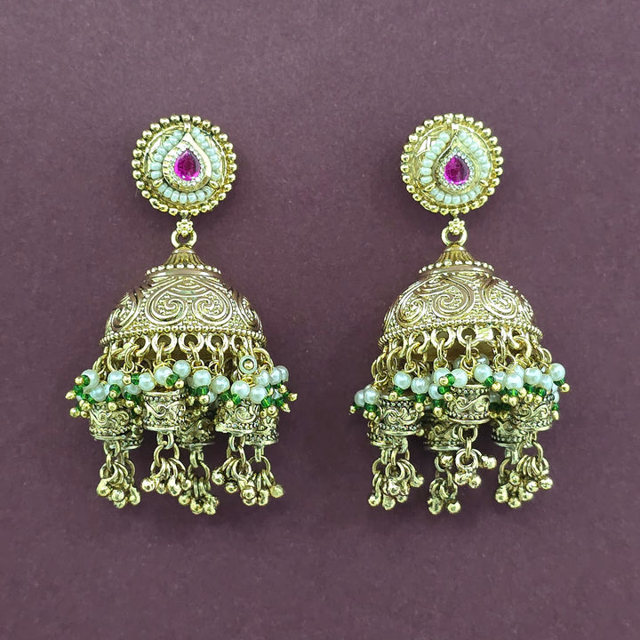 228903 Antique Jhumki With Matte Gold Plating