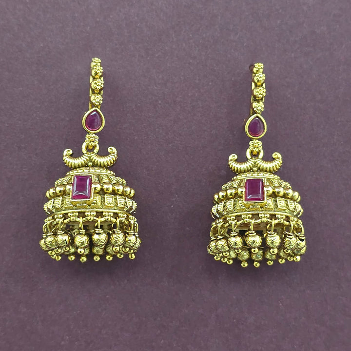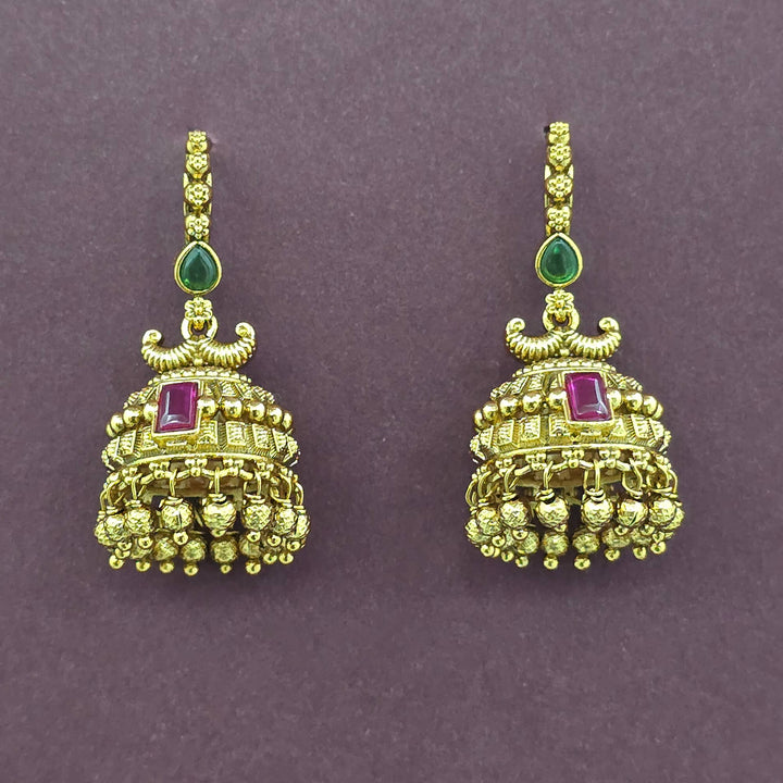 Weight: 16.0 Grams, Height = 40 mm || Width = 20 mm,Classic Jhumki,Matte Gold Plating,Antique Earring