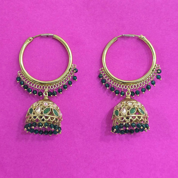 Weight: 24.0 Grams, Height = 65 mm || Width = 25 mm,Bali Jhumki,Mehndi Plating,Antique Earring