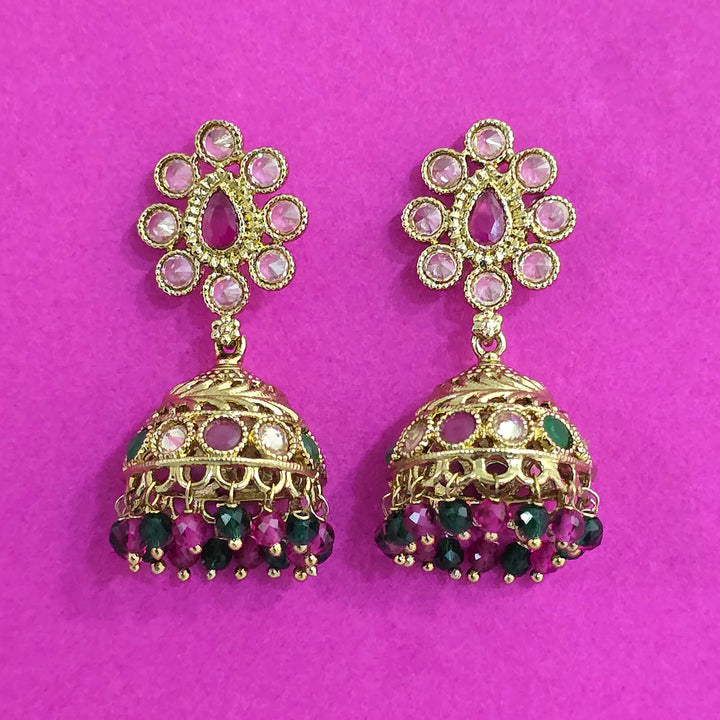 227682 Antique Jhumki With Mehndi Plating