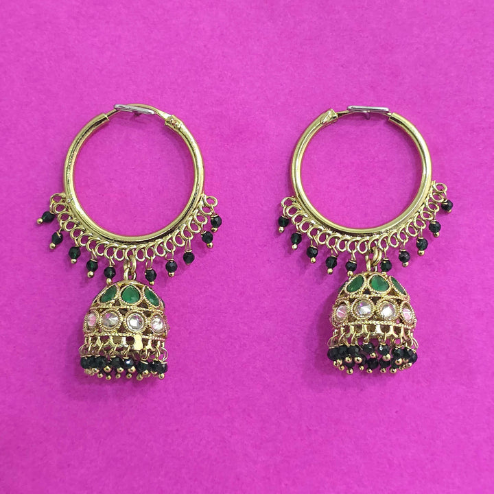 Weight: 13.0 Grams, Height = 50 mm || Width = 17 mm,Bali Jhumki,Mehndi Plating,Antique Earring