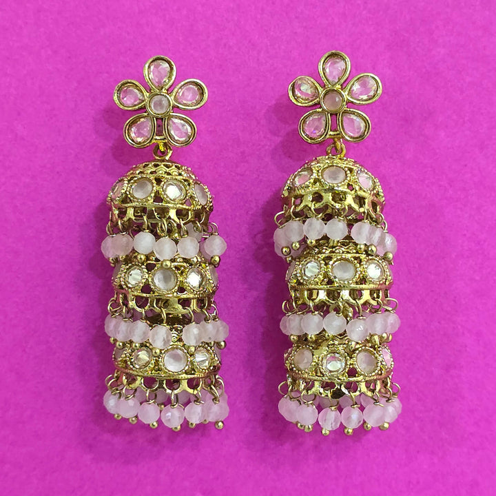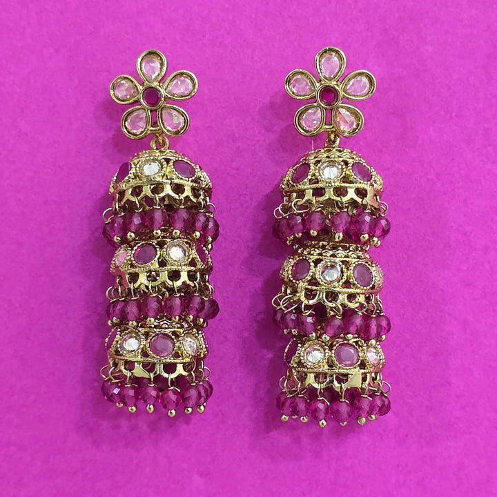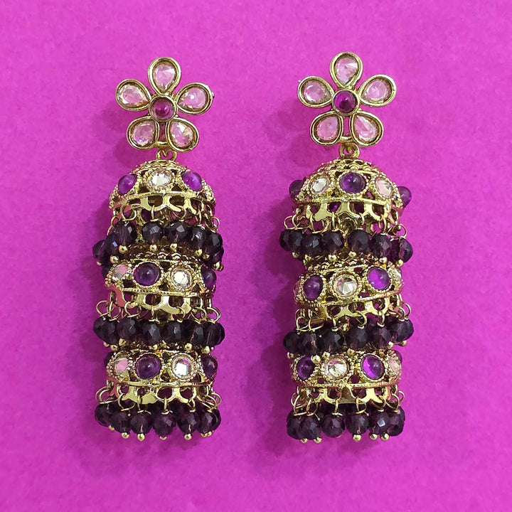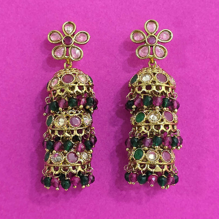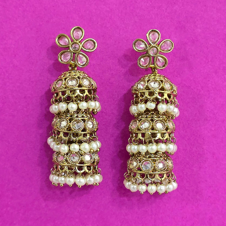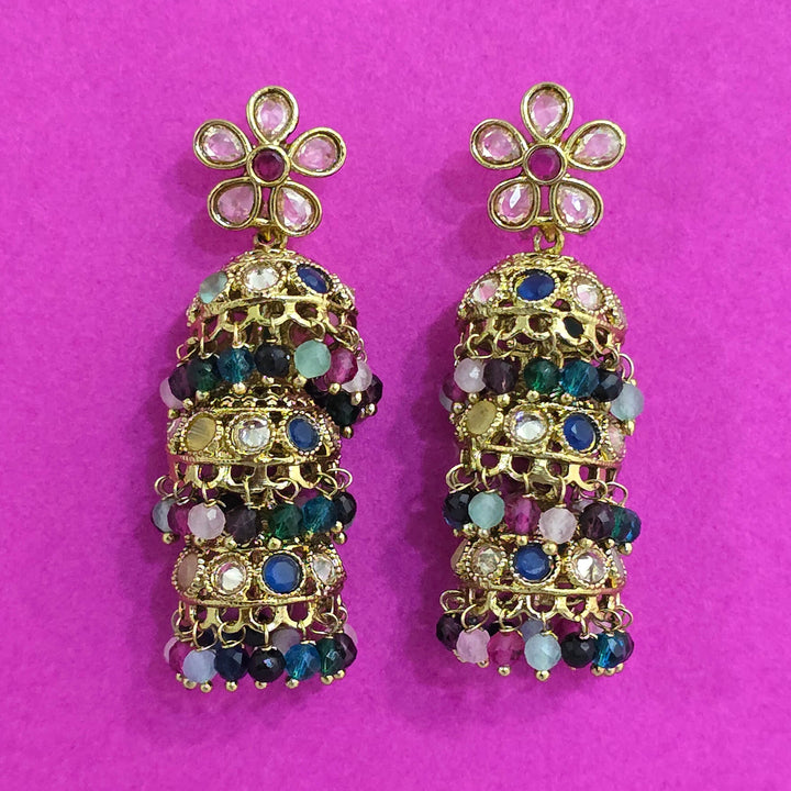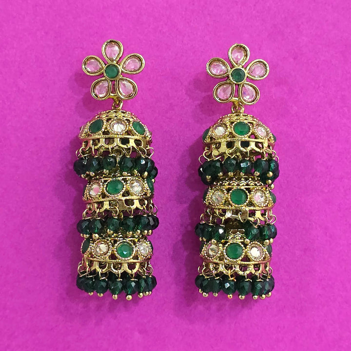 Weight: 21.0 Grams, Height = 54 mm || Width = 16 mm,Triple Jhumki,Mehndi Plating,Antique Earring