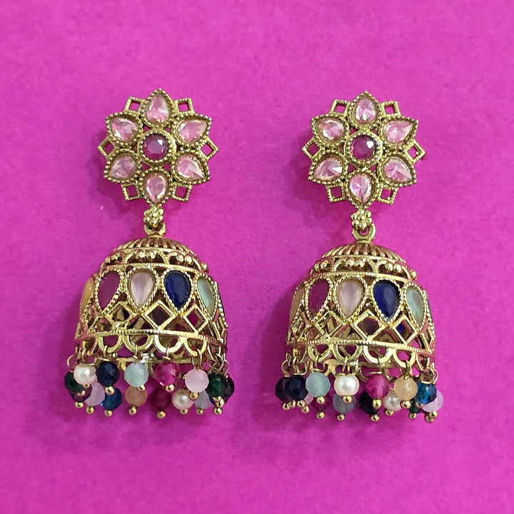 Weight: 18.0 Grams, Height = 44 mm || Width = 24 mm,Classic Jhumki,Mehndi Plating,Antique Earring
