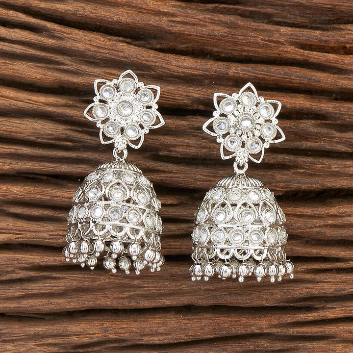 215821 Antique Jhumki With Rhodium Plating