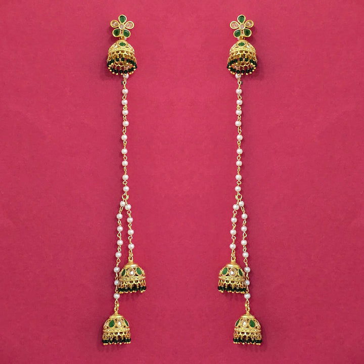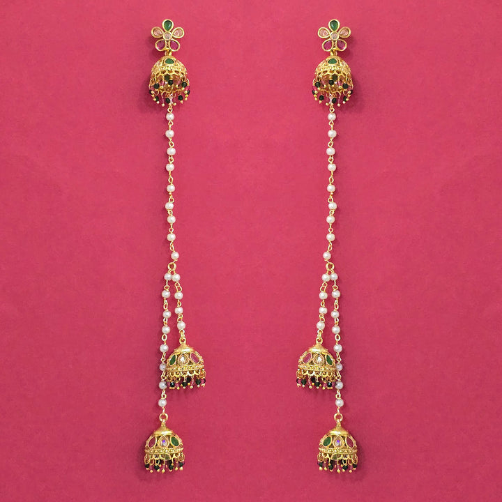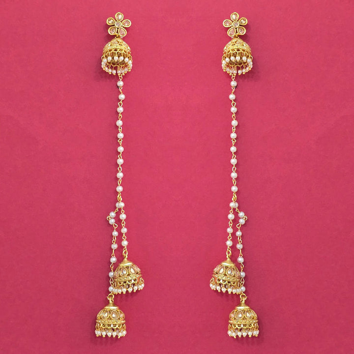 Weight: 34.0 Grams, Height = 92 mm || Width = 17 mm,Jhumki,Gold Plating,Antique Earring