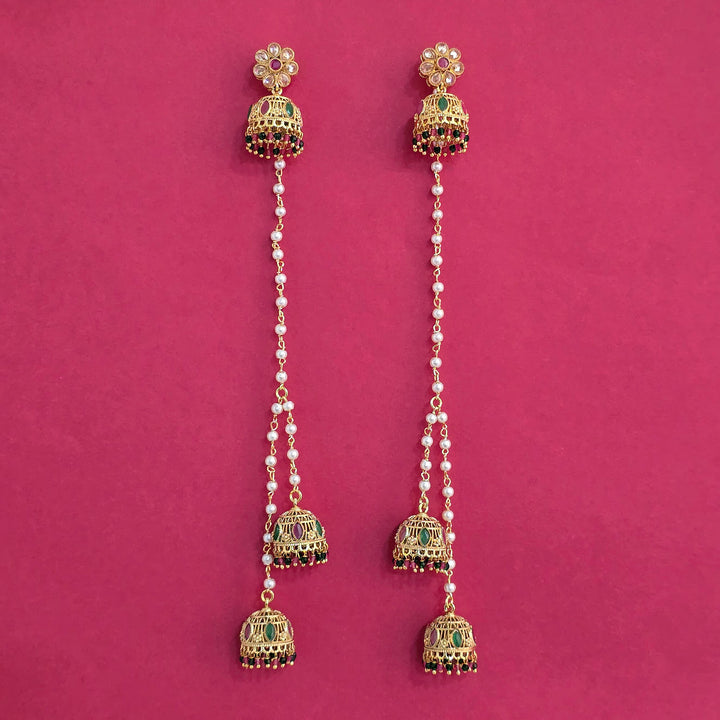Weight: 31.0 Grams, Height = 88 mm || Width = 17 mm,Jhumki,Gold Plating,Antique Earring