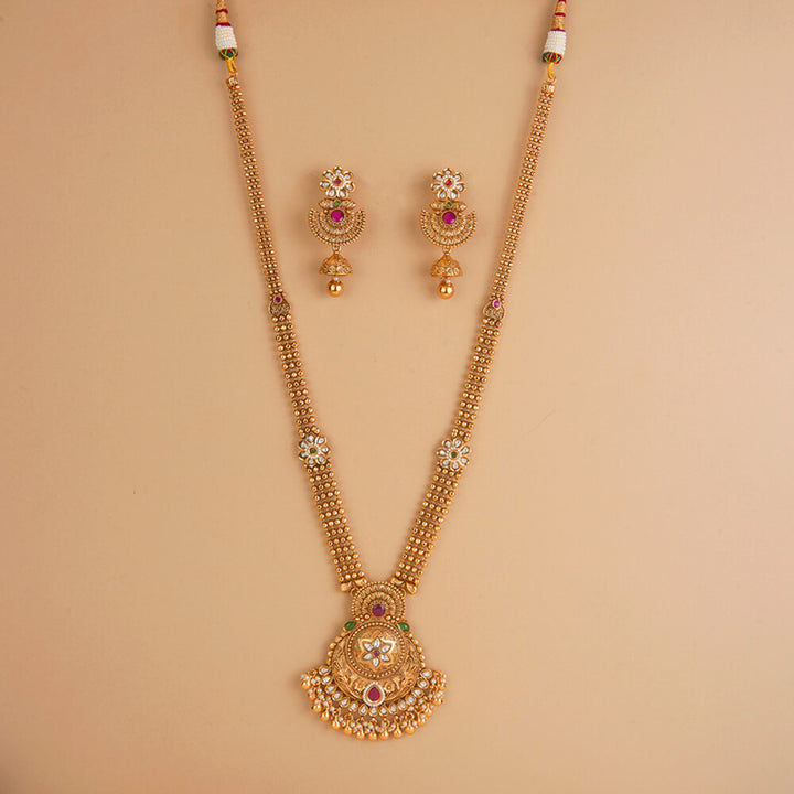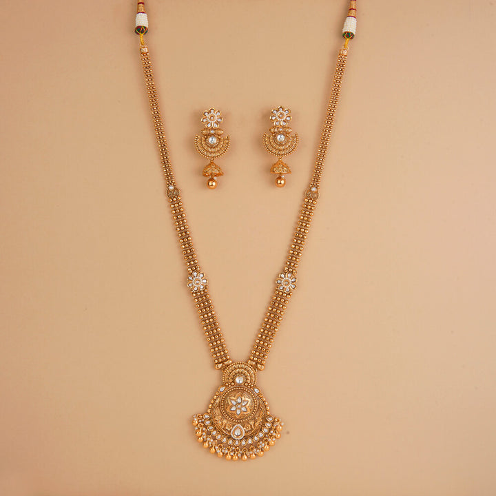 225339 Antique Long Necklace Set With Matte Gold Plating