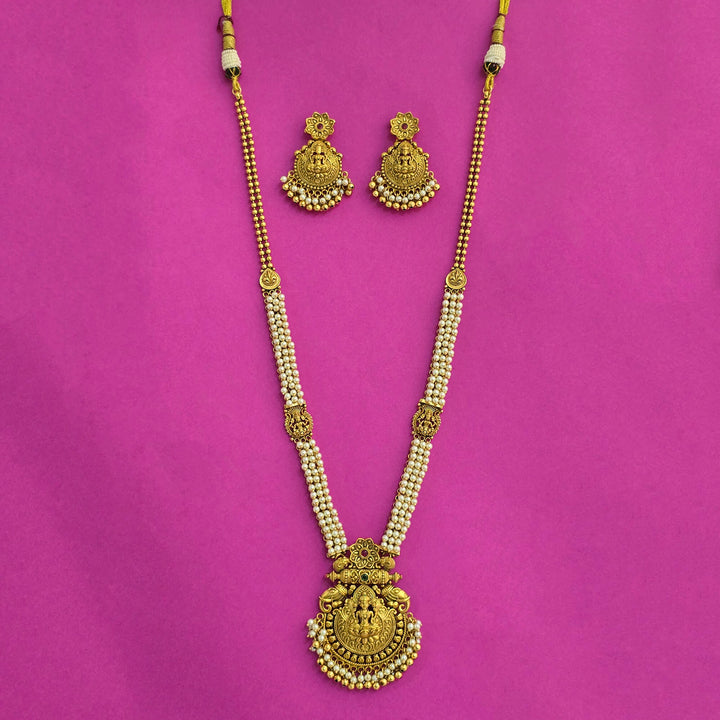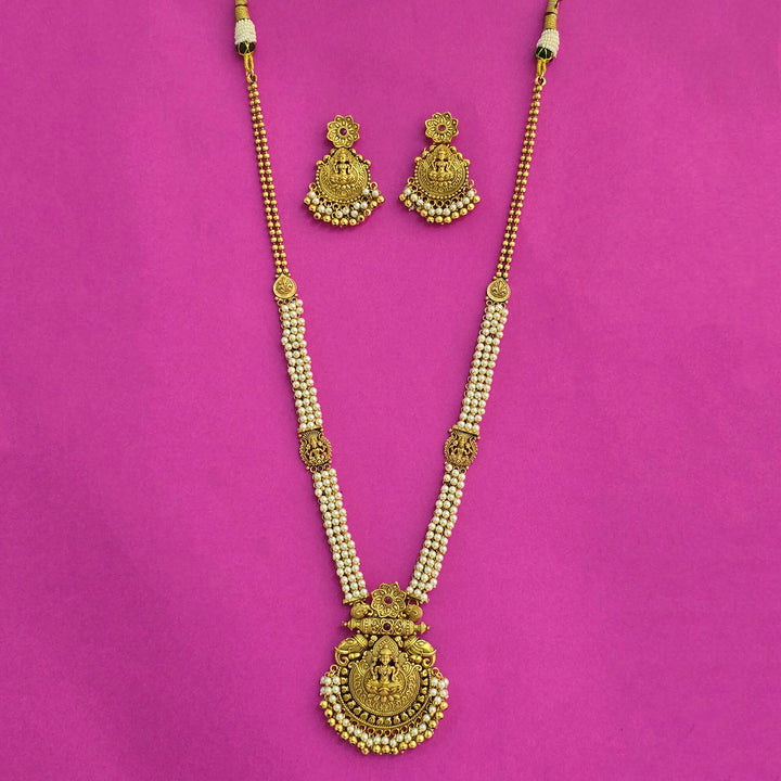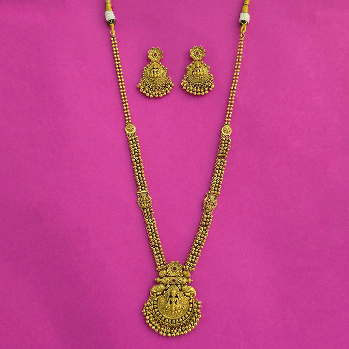 Weight: 101.0 Grams, Length = 20 Inch,Earring Height = 50 mm || Width = 38 mm,Temple Necklace,Matte Gold Plating,Antique Necklace Set
