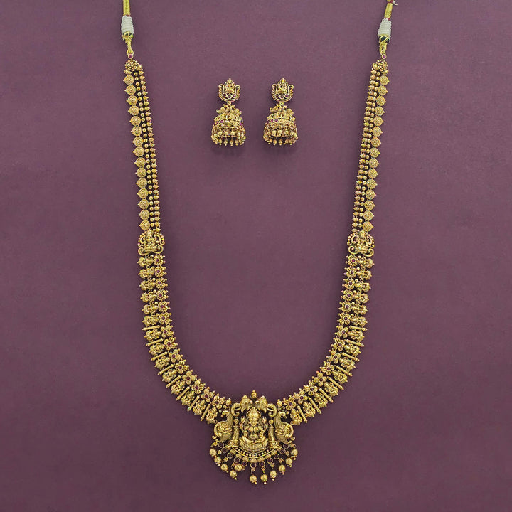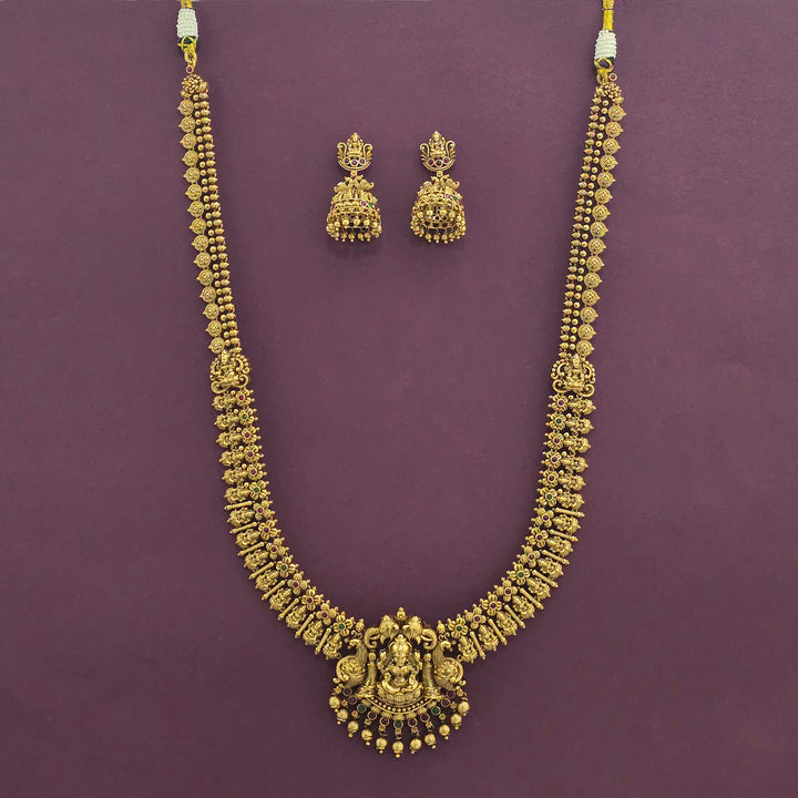 Weight: 142.0 Grams, Length = 22 Inch,Earring Height = 45 mm || Width = 22 mm,Temple Necklace,Matte Gold Plating,Antique Necklace Set
