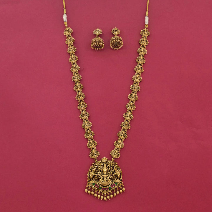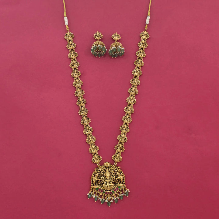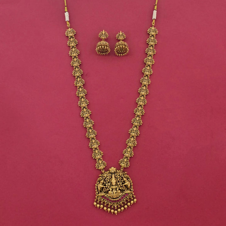 Weight: 140.0 Grams, Length = 18 Inch,Earring Height = 40 mm || Width = 23 mm,Temple Necklace,Matte Gold Plating,Antique Necklace Set