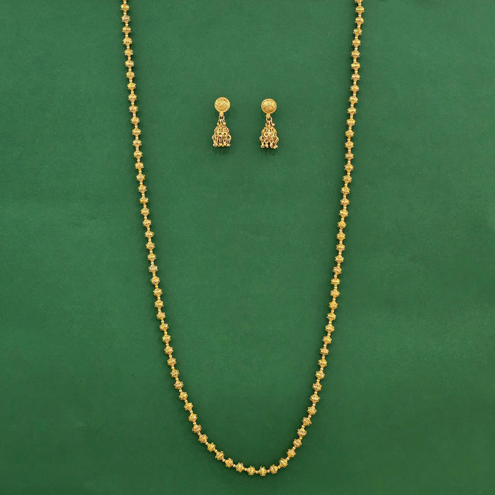 Weight: 64.0 Grams, Length = 30 Inch,Earring Height = 37 mm || Width = 15 mm,Plain Gold Mala Necklace,Gold Plating,Antique Necklace Set