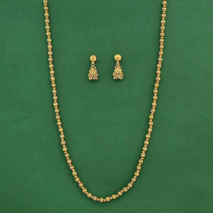 Weight: 58.0 Grams, Length = 30 Inch,Earring Height = 35 mm || Width = 16 mm,Plain Gold Mala Necklace,Gold Plating,Antique Necklace Set