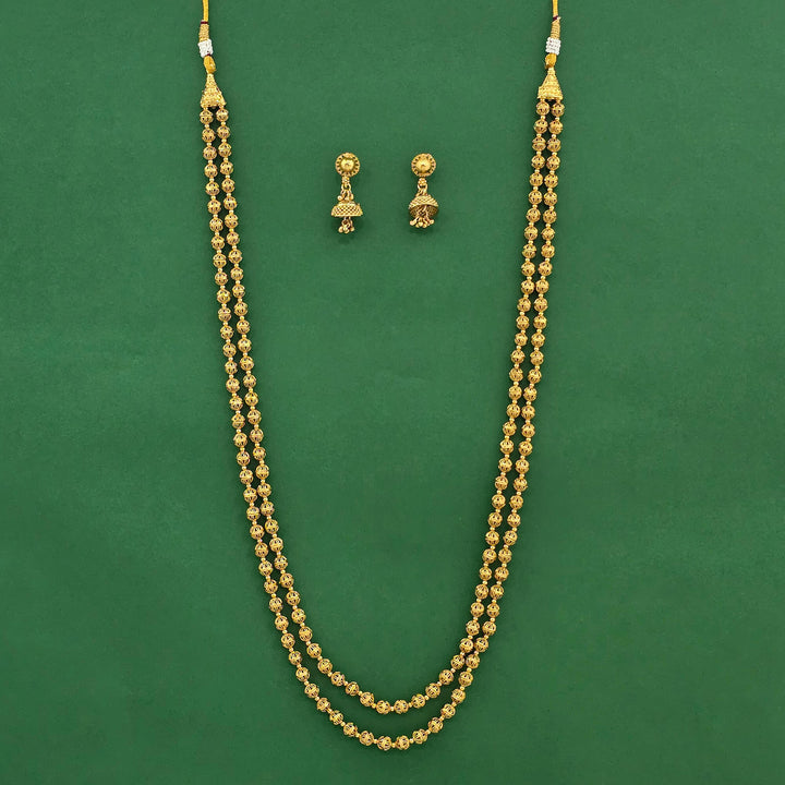 Weight: 85.0 Grams, Length = 24 Inch,Earring Height = 36 mm || Width = 15 mm,Plain Gold Mala Necklace,Gold Plating,Antique Necklace Set