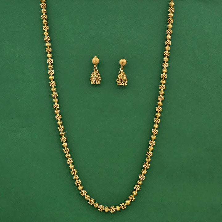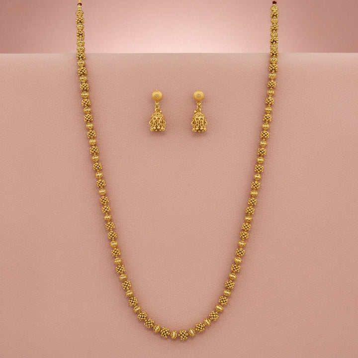 Weight: 76.0 Grams, Length = 24 Inch,Earring Height = 35 mm || Width = 16 mm,Plain Gold Mala Necklace,Gold Plating,Antique Necklace Set
