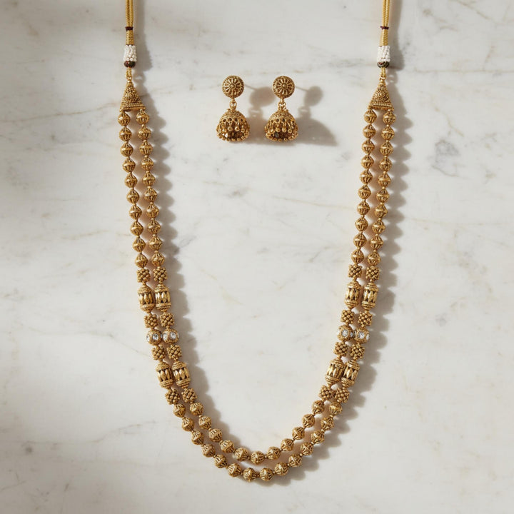 Weight: 110.0 Grams, Length = 20 Inch,Earring Height = 40 mm || Width = 22 mm,Long Mala Necklace,Gold Plating,Antique Necklace Set