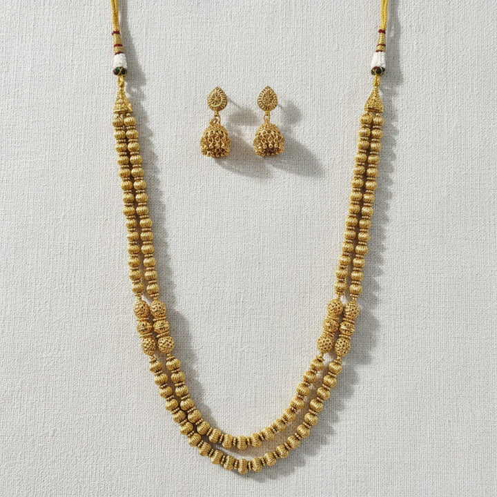 Weight: 93.0 Grams, Length = 20 Inch,Earring Height = 42 mm || Width = 20 mm,Long Mala Necklace,Plain Gold Mala Necklace,Gold Plating,Antique Necklace Set