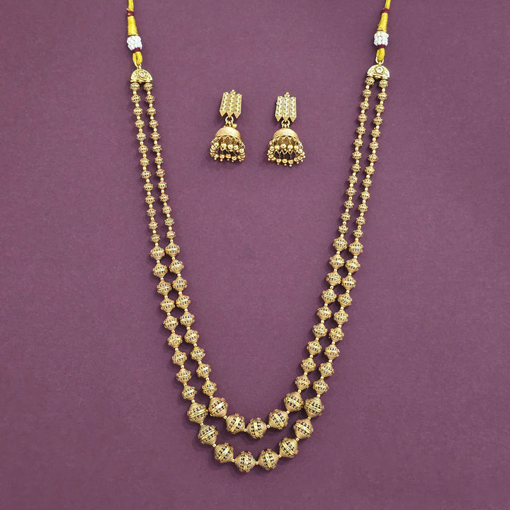 Weight: 76.0 Grams, Length = 18 Inch,Earring Height = 36 Mm || Width = 20 Mm,Long Mala Necklace,Gold Plating,Antique Necklace Set
