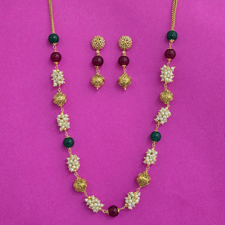 Weight: 42.0 Grams, Length = 22 Inch,Height = 50 mm || Width = 12 mm,Long Mala Necklace,Gold Plating,Antique Necklace Set