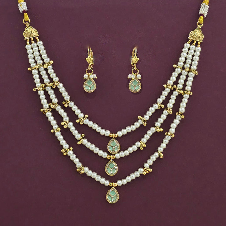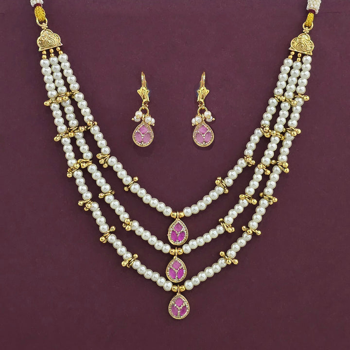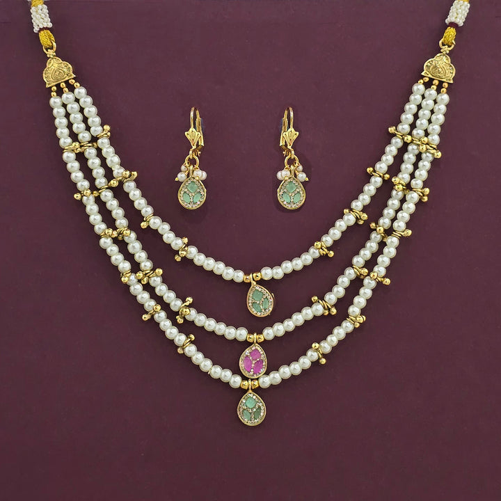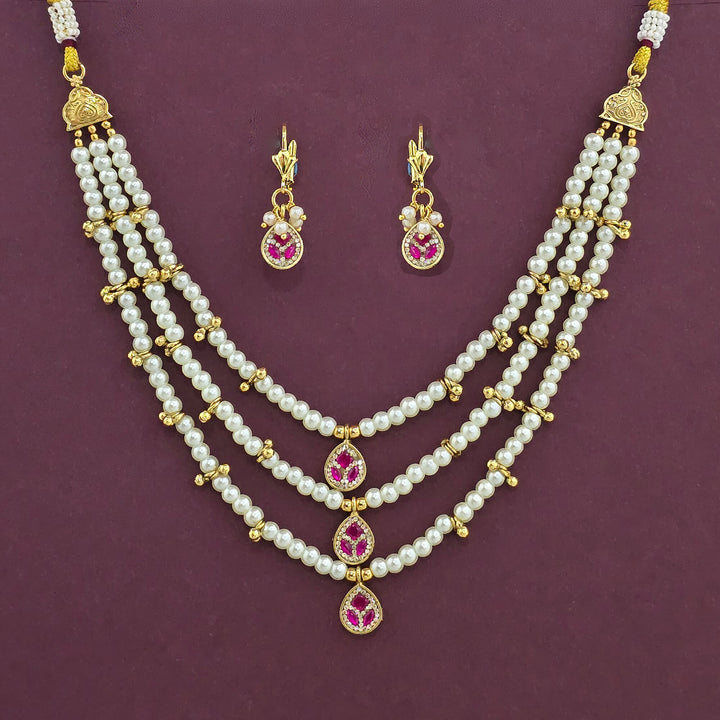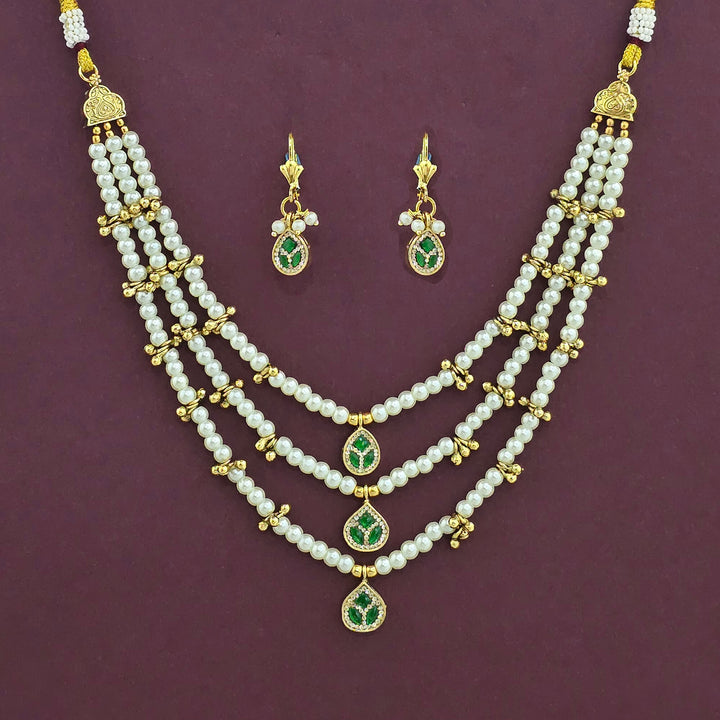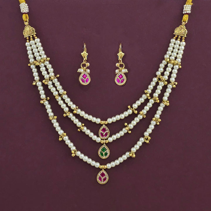 Weight: 41.0 Grams, Earring Height = 34 mm || Width = 10 mm,Regular Size And Adjustable,Pearl Necklace,Gold Plating,Antique Necklace Set