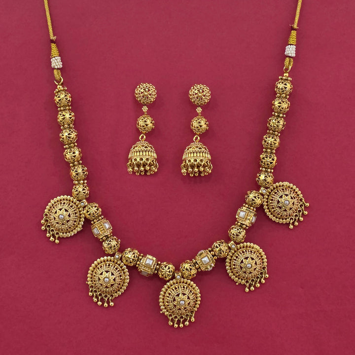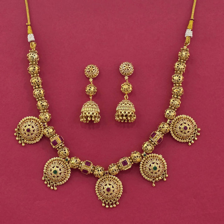 Weight: 74.0 Grams, Earring Height = 53 mm || Width = 20 mm,Regular Size And Adjustable,Bollywood Look,Gold Plating,Antique Necklace Set