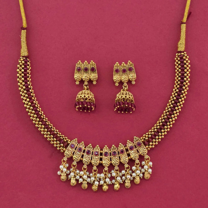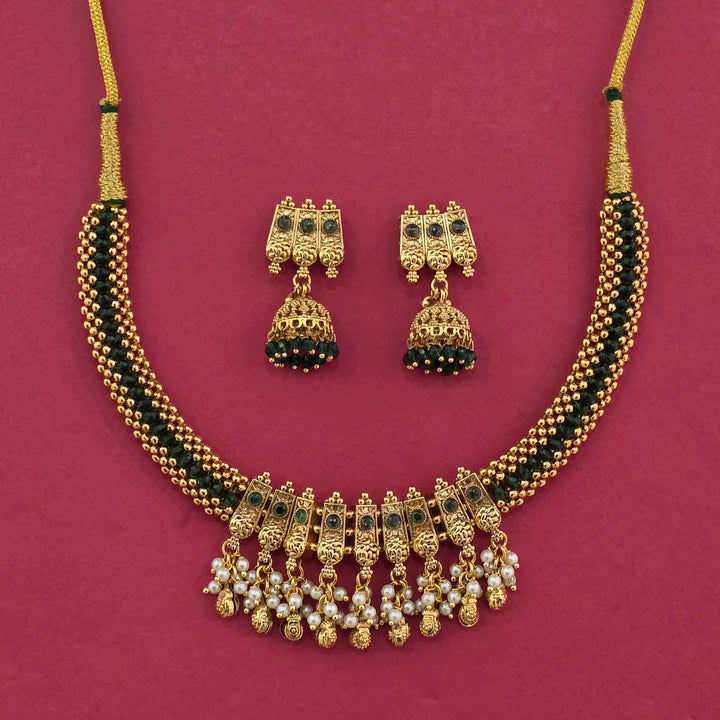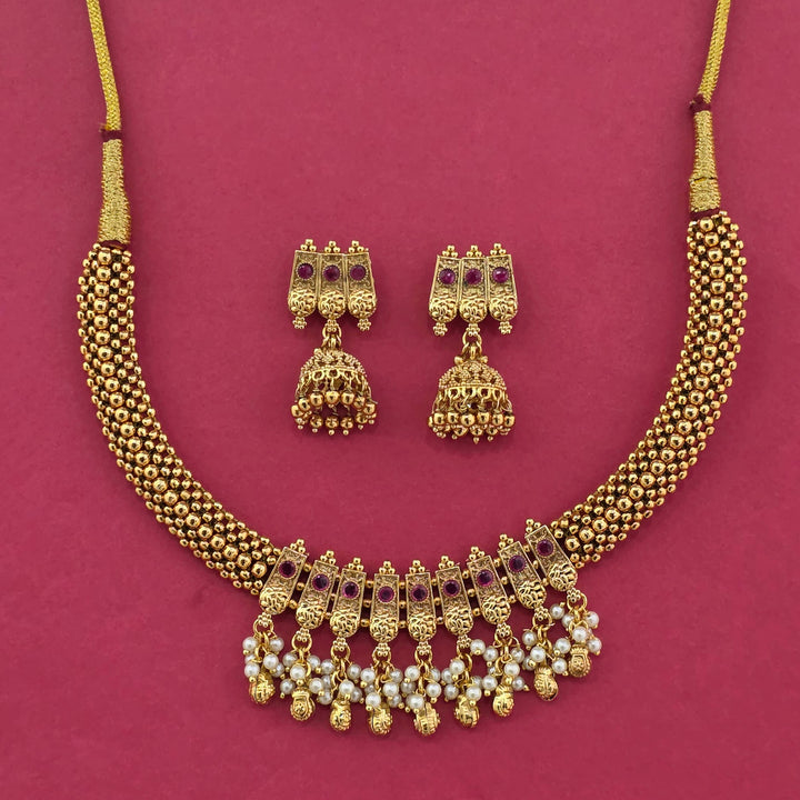 Weight: 58.0 Grams, Earring Height = 40 mm || Width = 18 mm,Moti Thushi Mala,Gold Plating,Antique Necklace Set