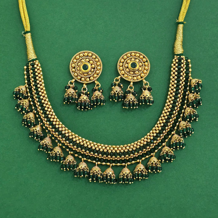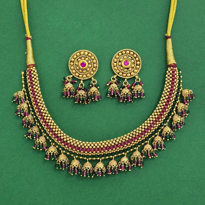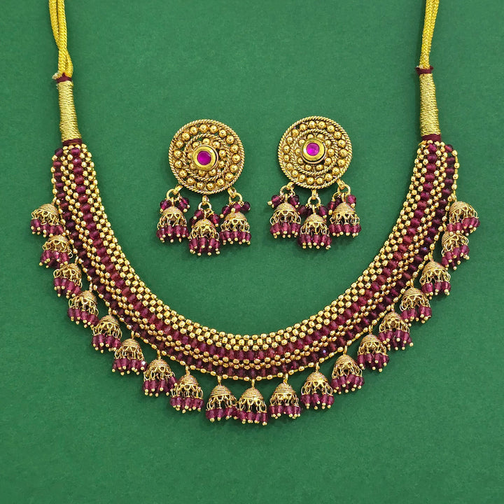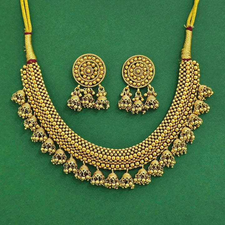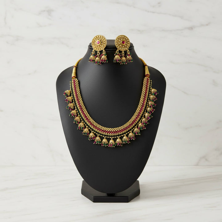 Weight: 93.0 Grams, Earring Height = 45 mm || Width = 33 mm,Regular Size And Adjustable,Thushi Mala Necklace,Gold Plating,Antique Necklace Set