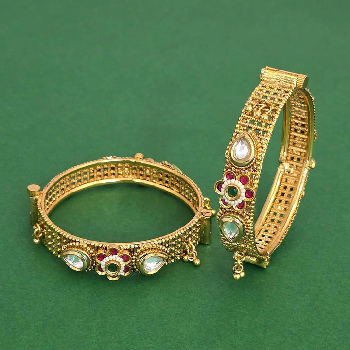 Weight: 66.0 Grams, 2 Pc Bangle,Openable Bangle,Gold Plating,Antique Bangle
