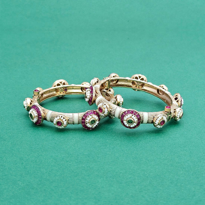 225941 Antique Meenakari Bangles With Matte Gold Plating